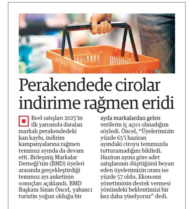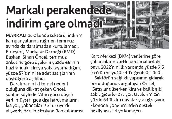 Temmuzda 3 markadan 2'sinin cirosu geriledi