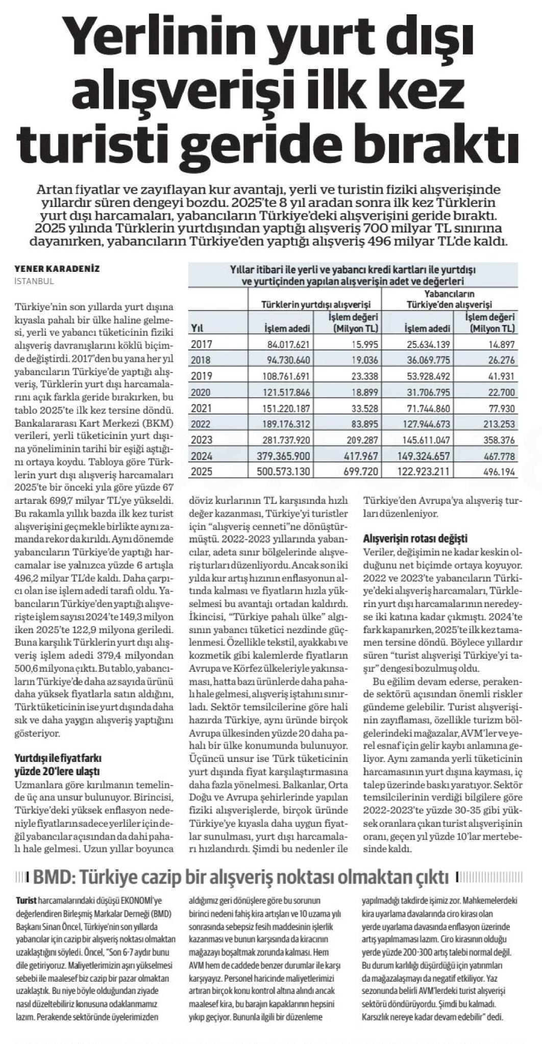 Yerlinin Yurt Dışı Alışverişi İlk Kez Turisti Geride Bıraktı...