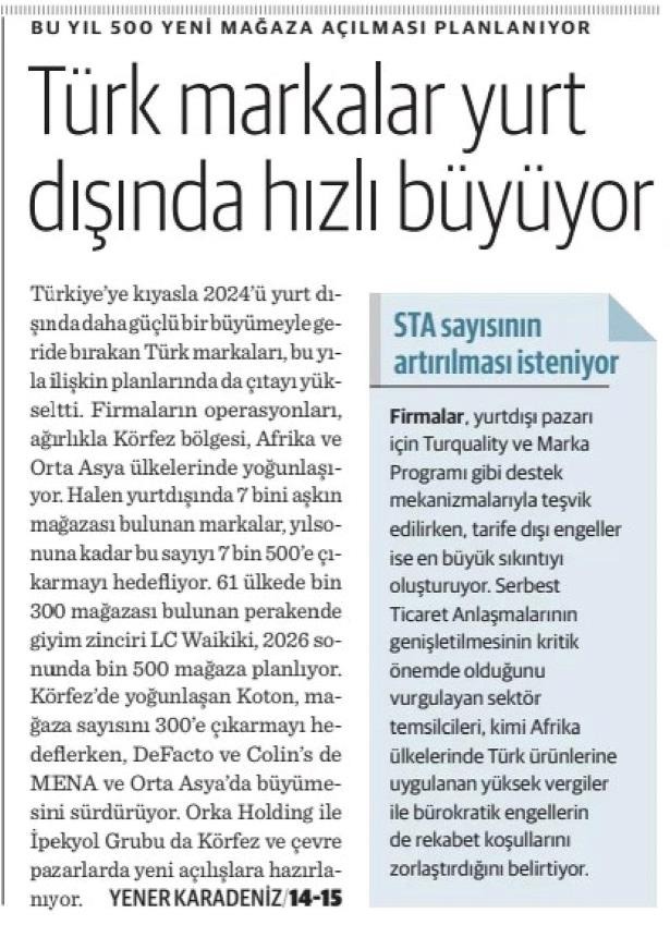MARKALARIMIZ YURT DIŞINDA BU YIL EN AZ 500 YENİ MAĞAZA AÇACAK...